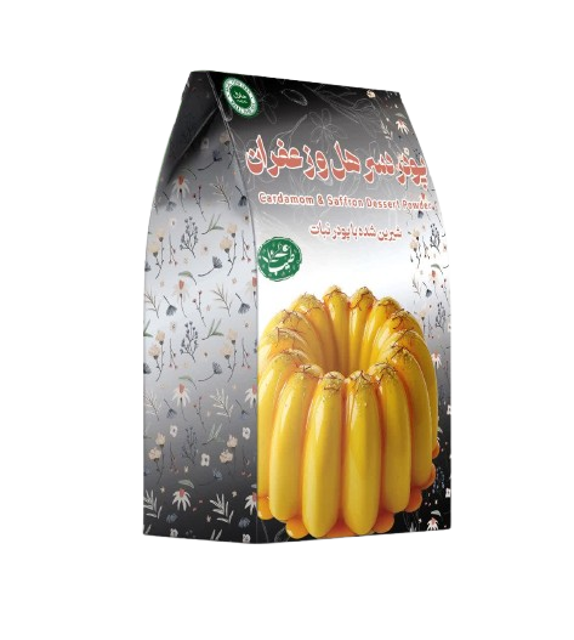 شیرینی خوشمزه و حلال تولید شده از ژلاتین گاوی ایرانی با ذبح شرعی، شیرین شده با پودر نبات و وانیل. با ترکیباتی شامل پودر نبات، وانیل و ژلاتین حلال. طرز تهیه آسان: محتویات را در شیر سرد حل و روی بخار آب قرار دهید، سپس در قالب ریخته و ۲ ساعت در یخچال بگذارید.